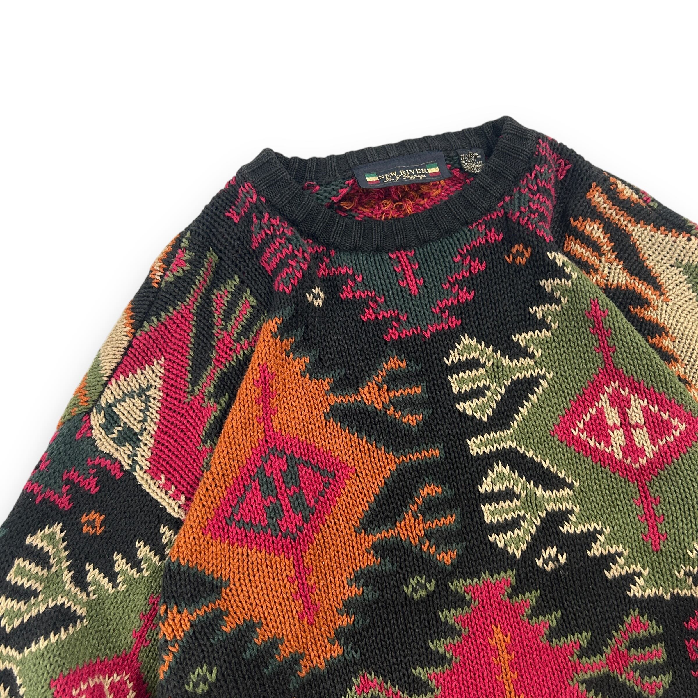 Designed Cotton Knit Sweater 古着 コットン ニット セーター 総柄