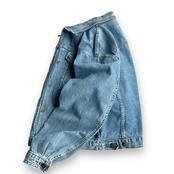 一般的なデニムジャケットと違い、ジップがあり、縦方向のパネル切替、ステッチなどがジルボーらしさを際立たせる1着。