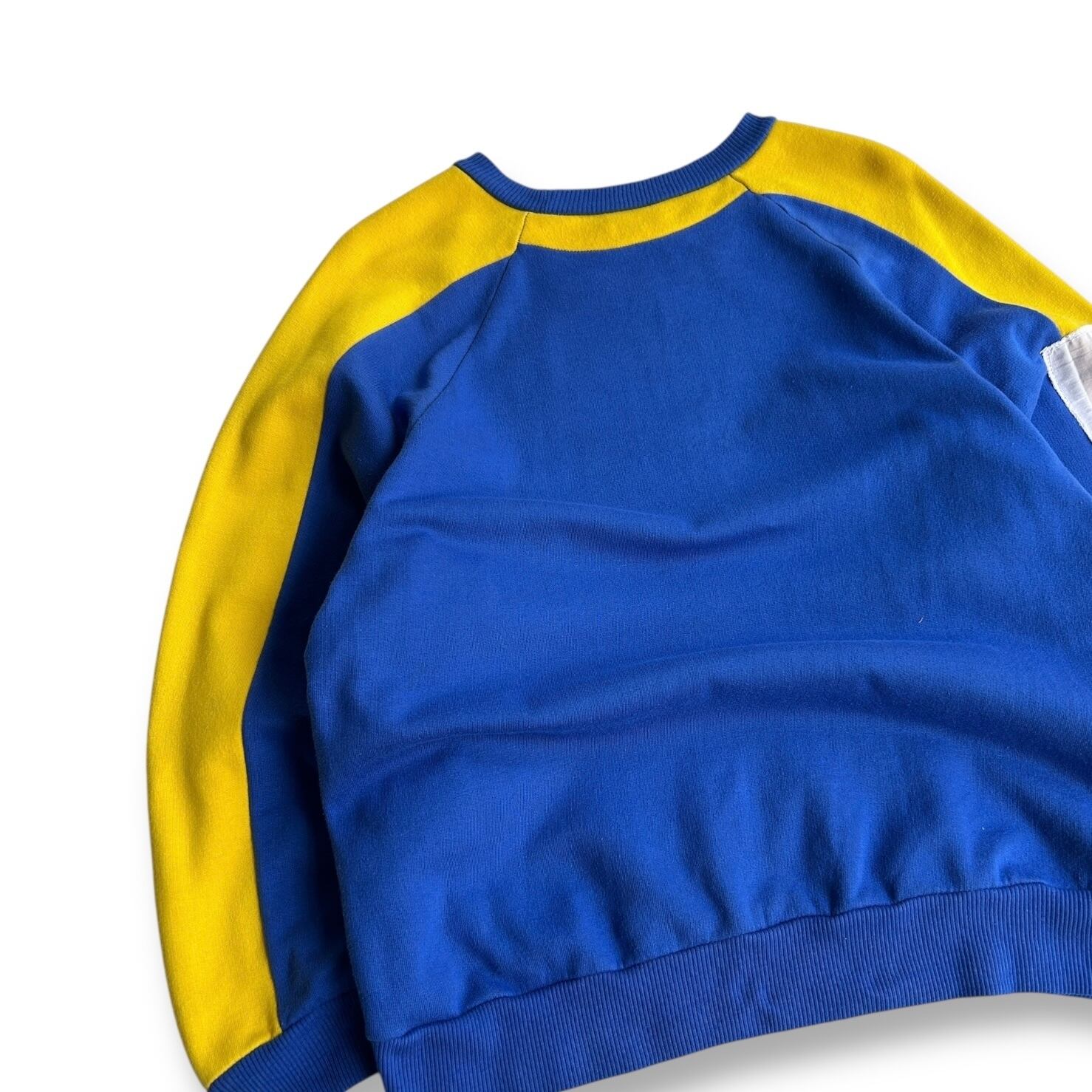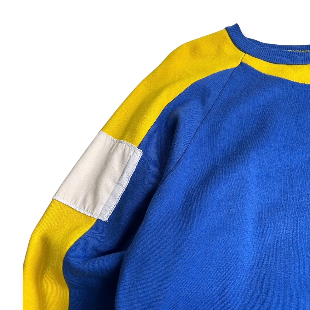 そしてブルーとイエローの鮮やかな色の切り替え、強いリブ、着丈が短く身幅が広いボックスな作りがこの年代のユーロのスウェットらしさを際立たせる1着です。