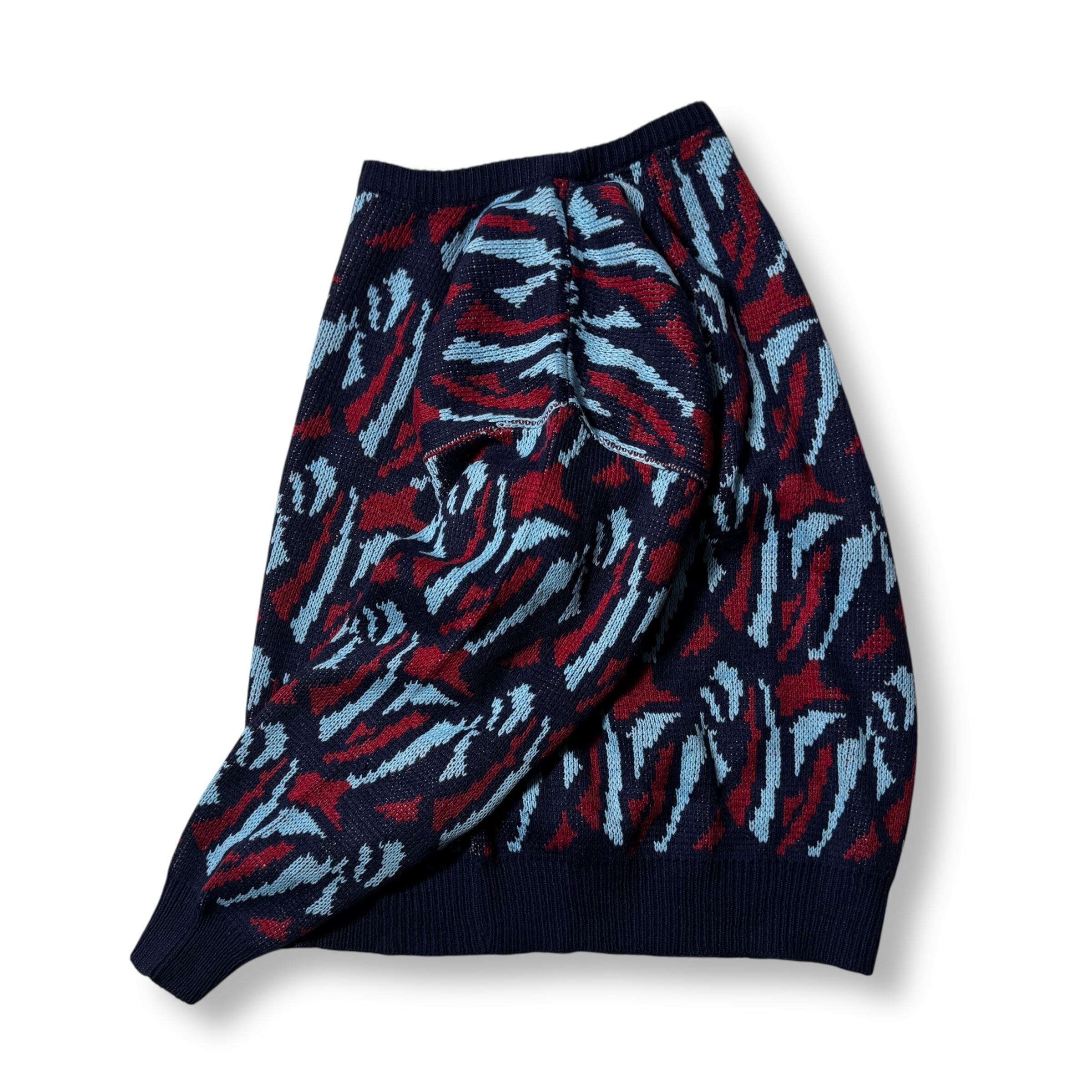 他と被らない配色が目を惹く総柄ニット。