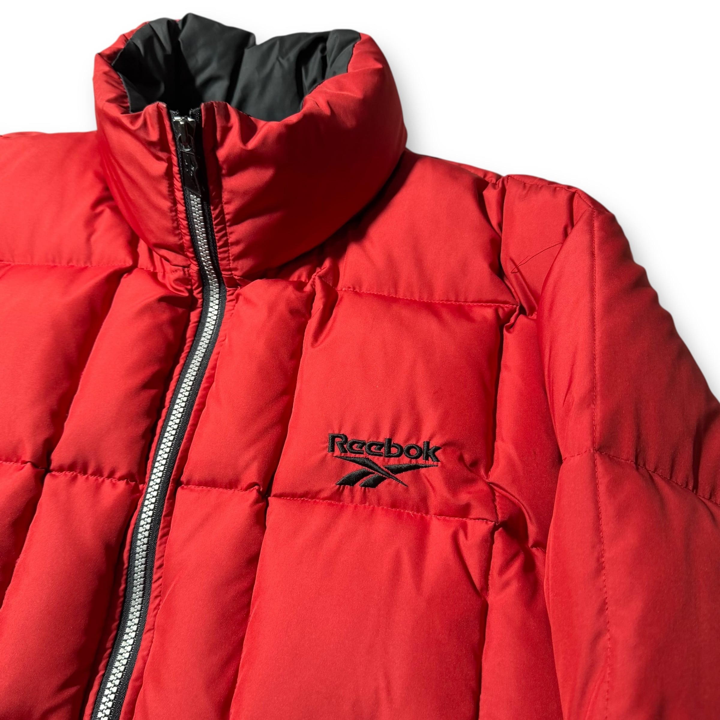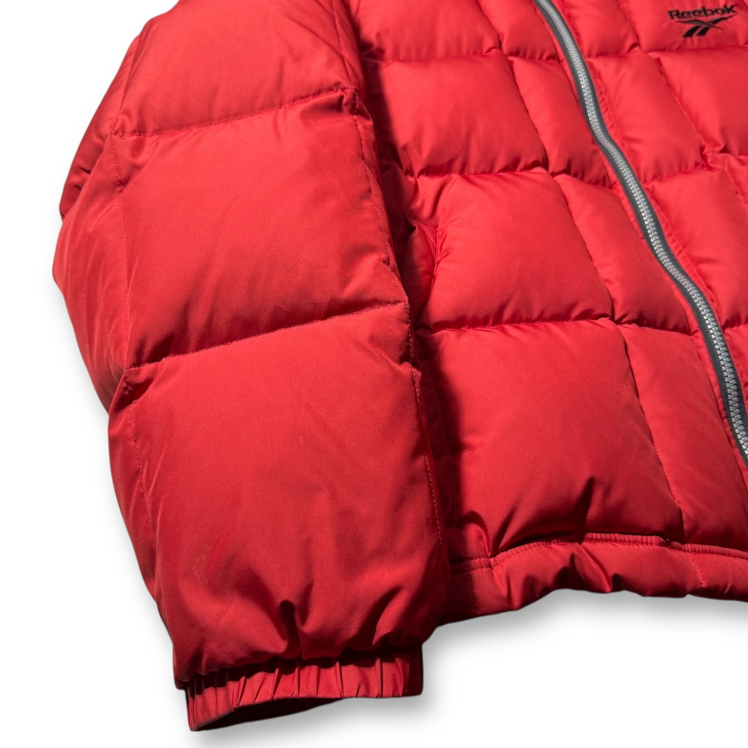 マットな質感のナイロン素材に、スクエア状のキルティングを施したリーボックのダウンジャケット。