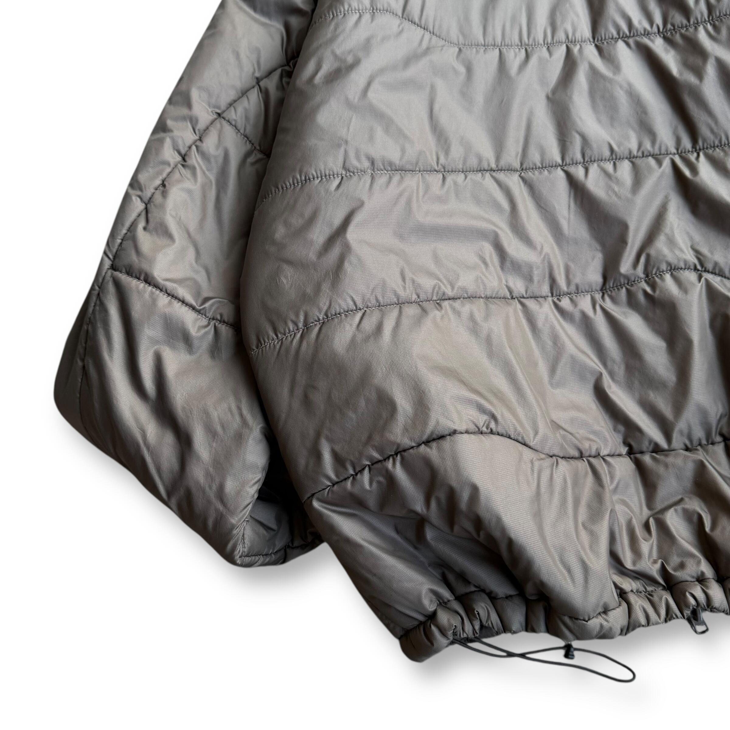 ありそうで無い渋いグレーブラウン系のカラーも魅力。裾ドローコード付きでシルエット調整も可能な万能アウター。