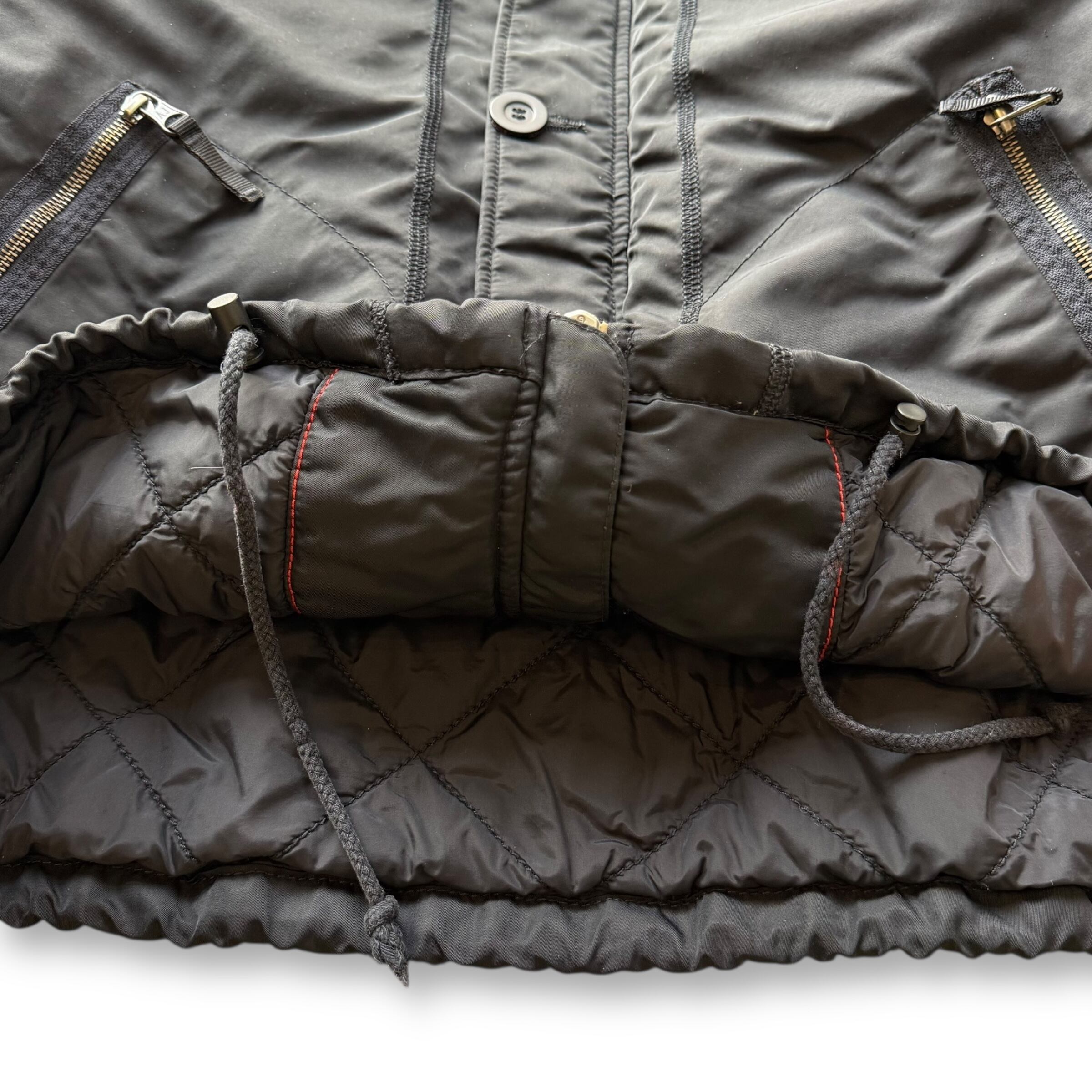 N-2Bをサンプリングしたようなフード周りの立体感やディテールを持ちながら、丈感はN-3Bとの中間ほど。ライニングはダイヤキルティング仕様で防寒性も◎