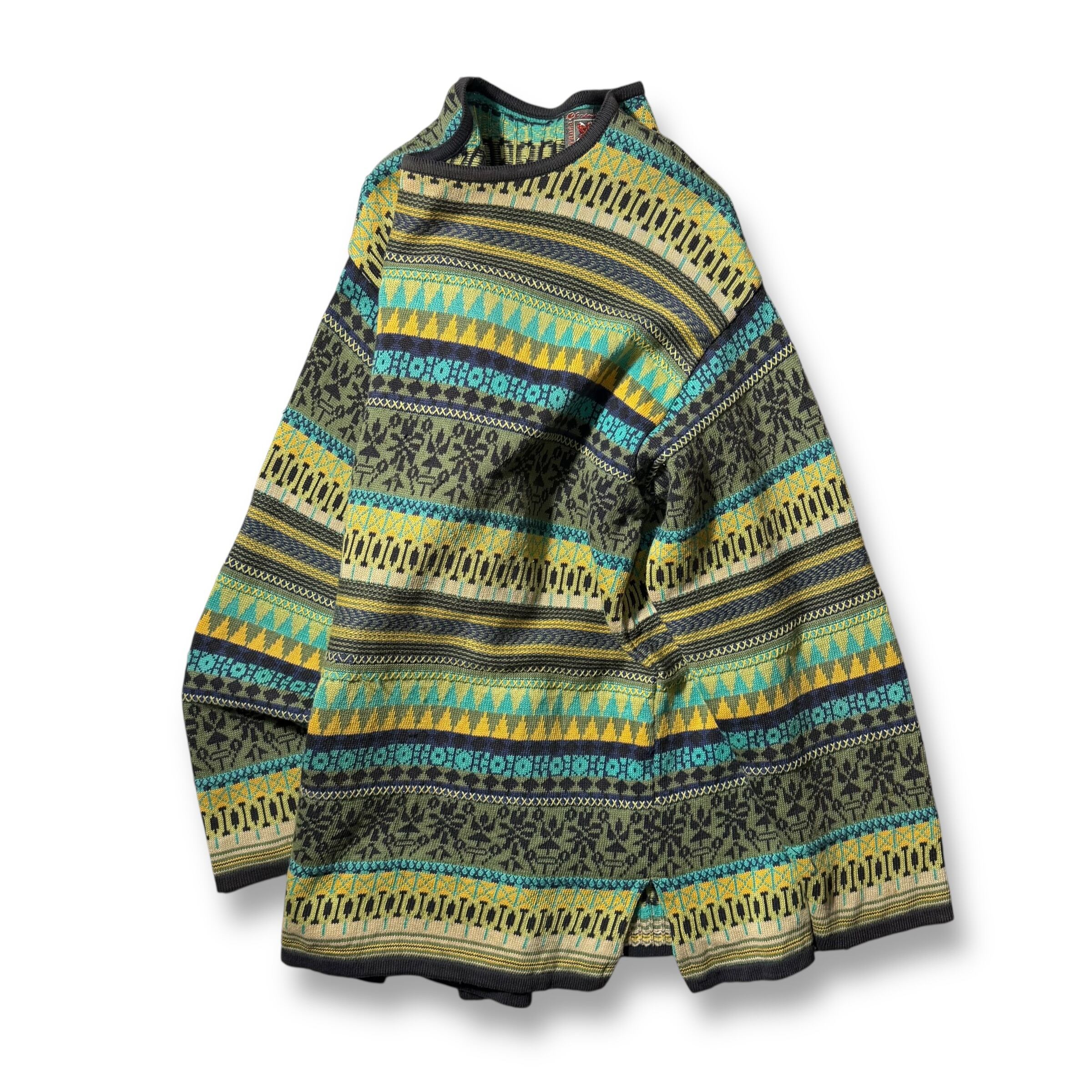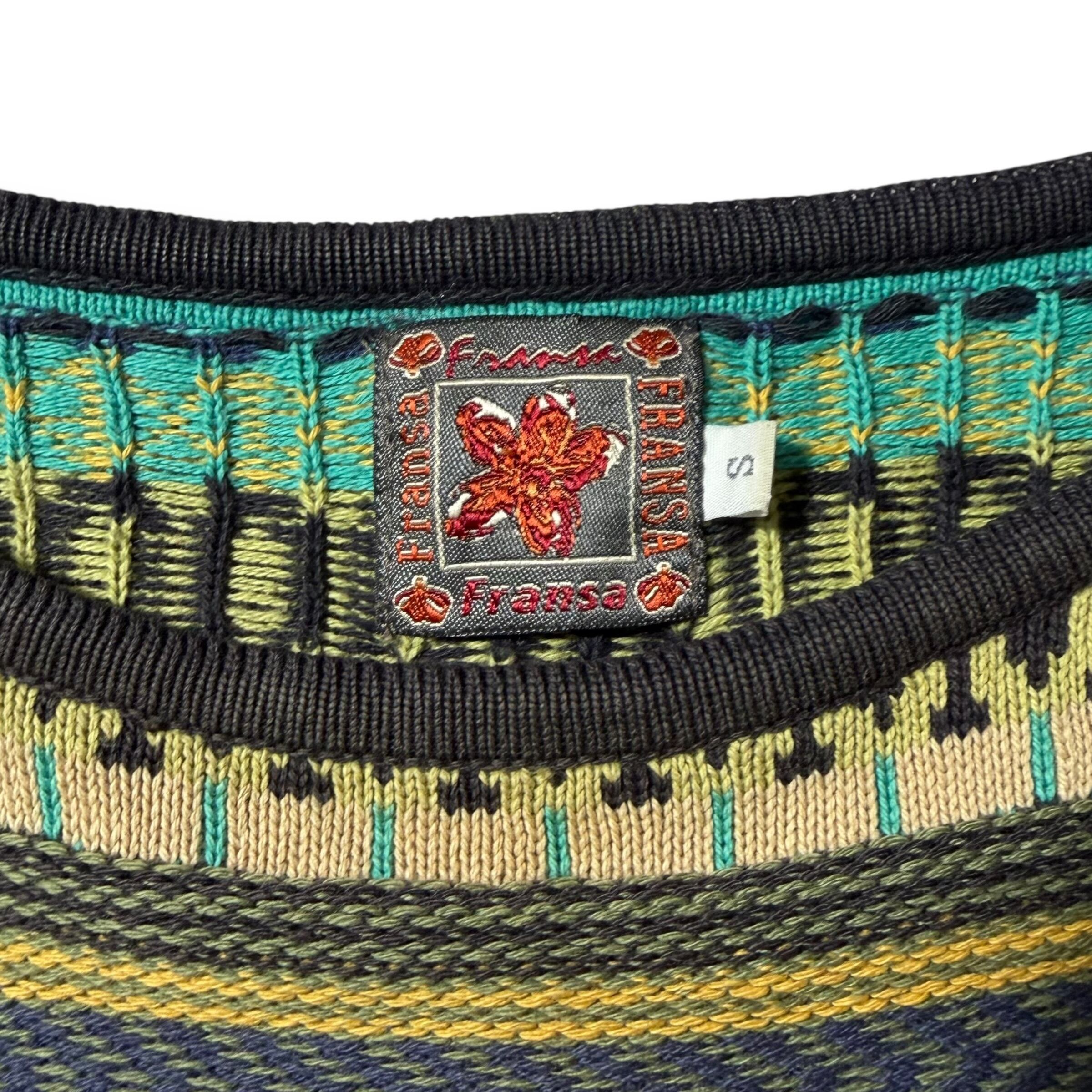Fransa Nordic Pattern Cotton Knit ユーロ 総柄ニット 古着