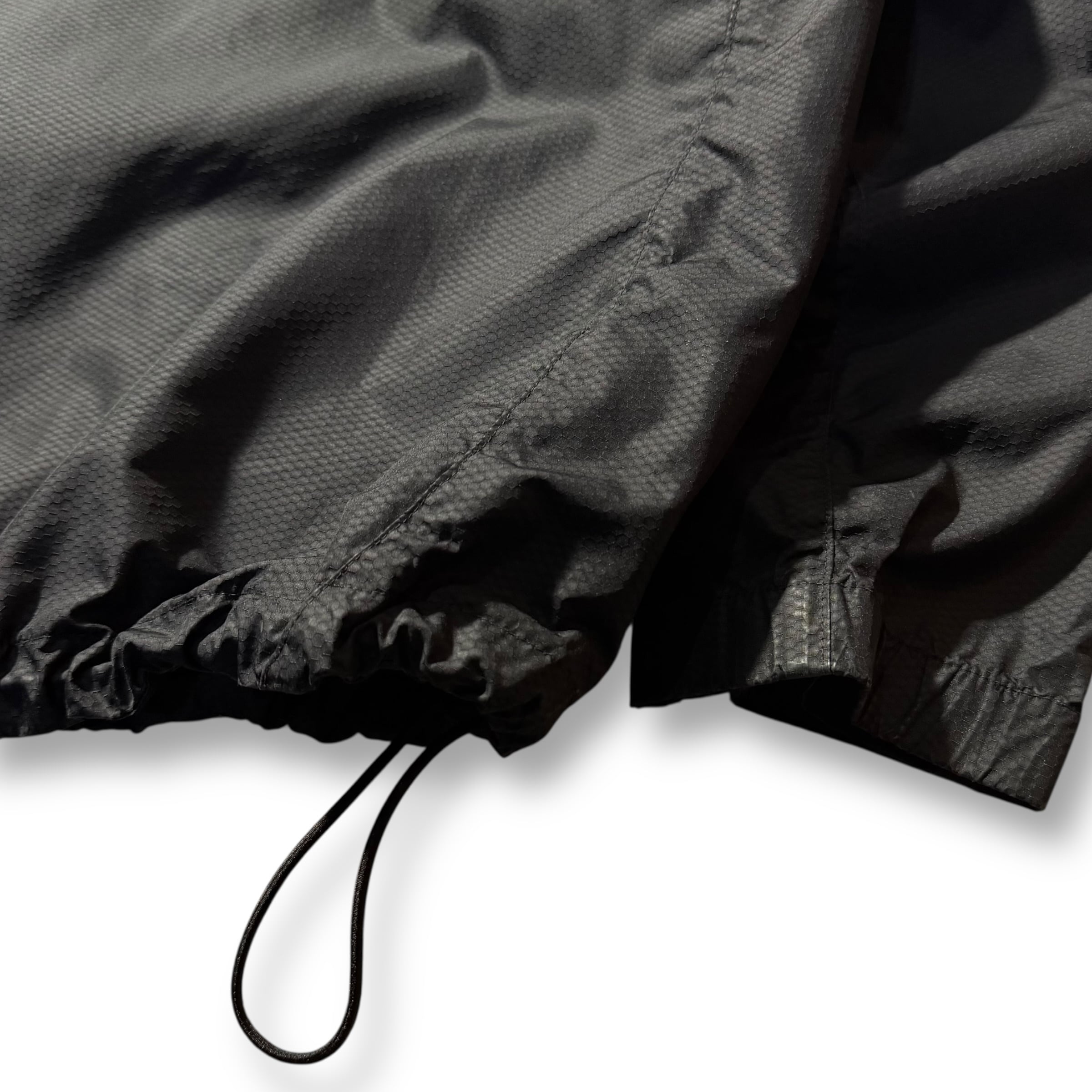 ブラックボディにハニカム状のリップストップ生地を使用した、テック感のある一着。胸元にはスウォッシュロゴ、裾には CLIMA-FIT のタグが入り、スポーツブランドらしい機能的なディテールが特徴です。