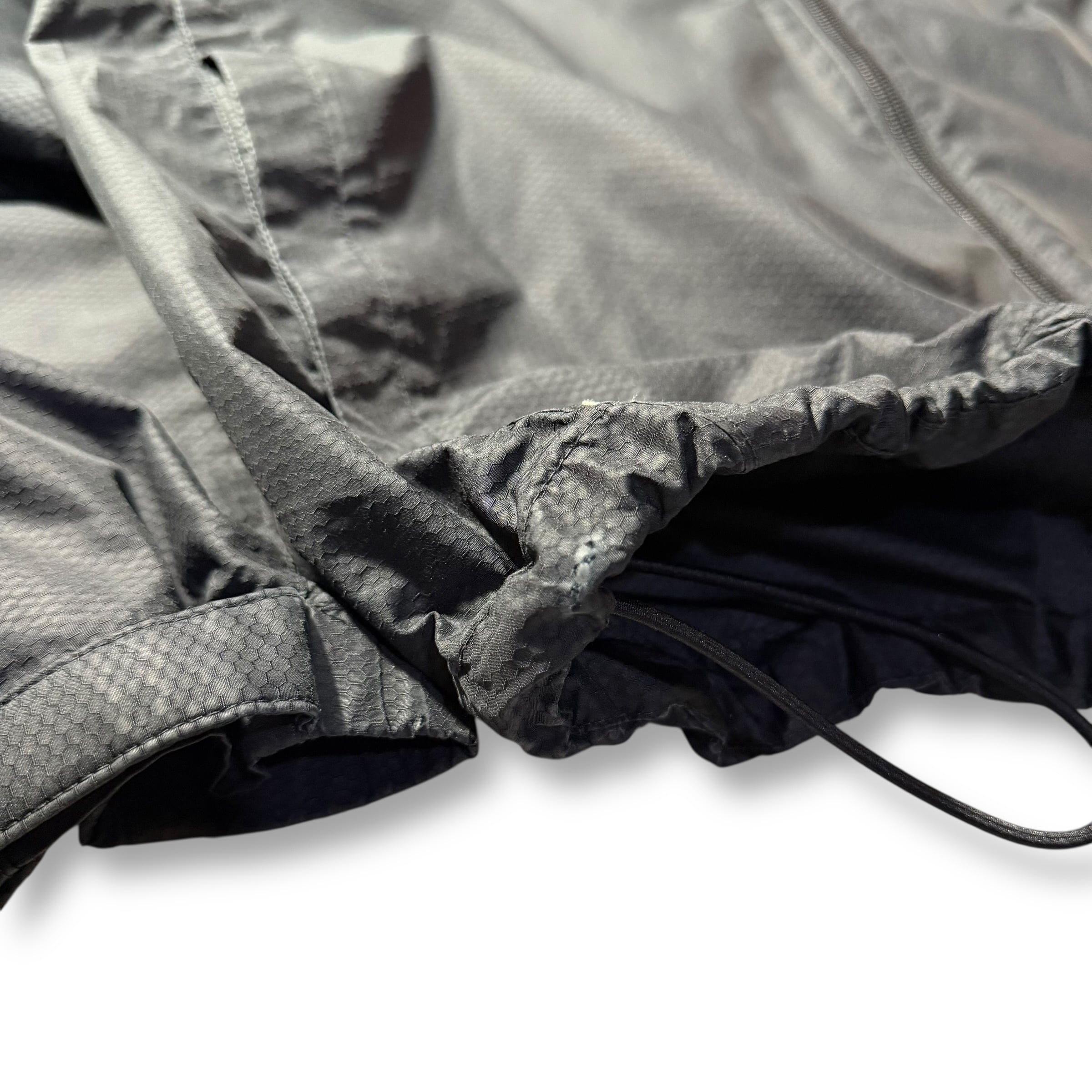 素材は軽量のポリエステルシェル。裏地はメッシュ仕様で通気性も良く、軽く羽織れるライトアウターとして使いやすいアイテム。裾にはドローコードが付き、シルエットの調整も可能です。