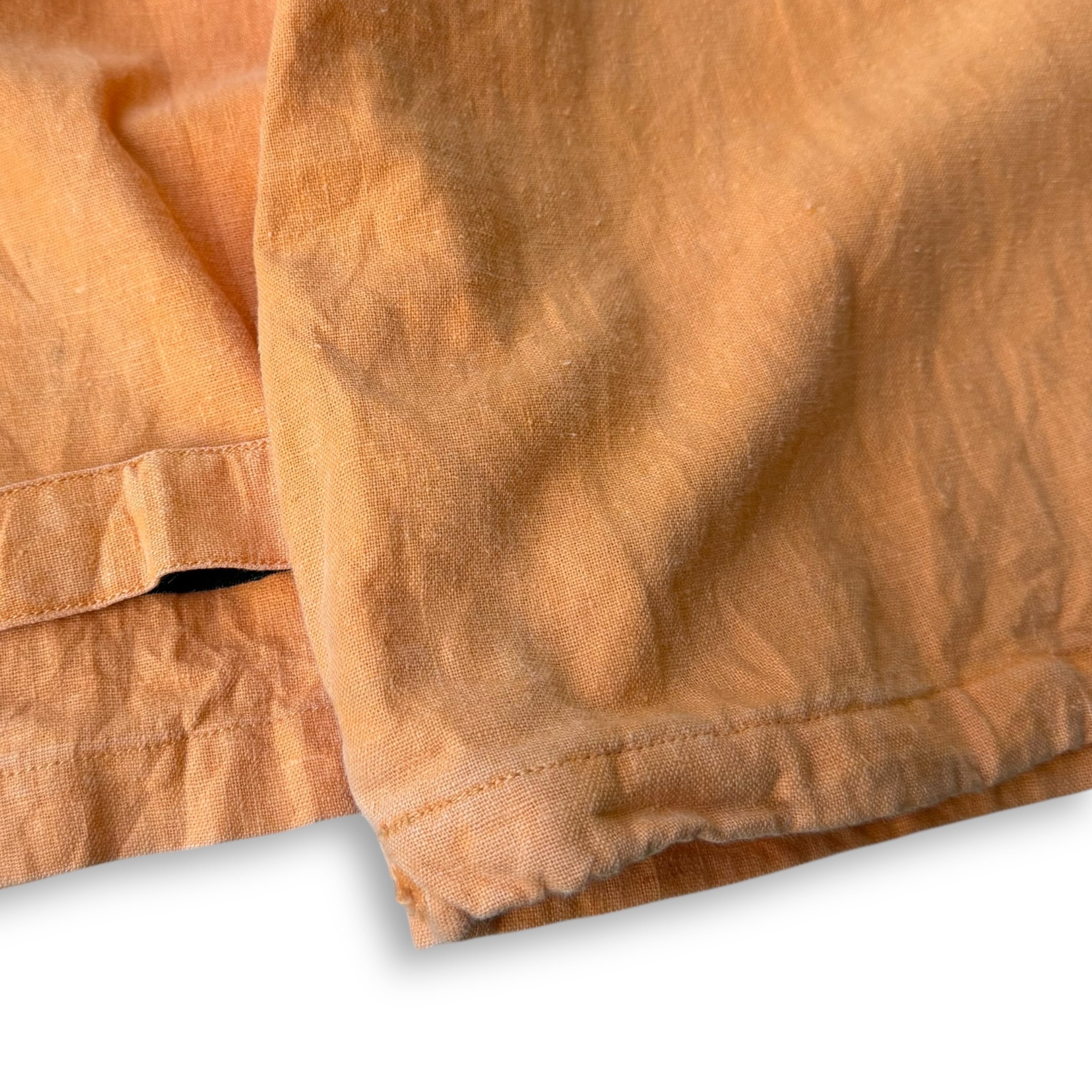 風合いのあるナチュラルな生地感に、フェードしたオレンジカラーが雰囲気抜群の一着。100%リネンならではのドライな質感で、軽く春先にも着やすいハーフジップタイプ。