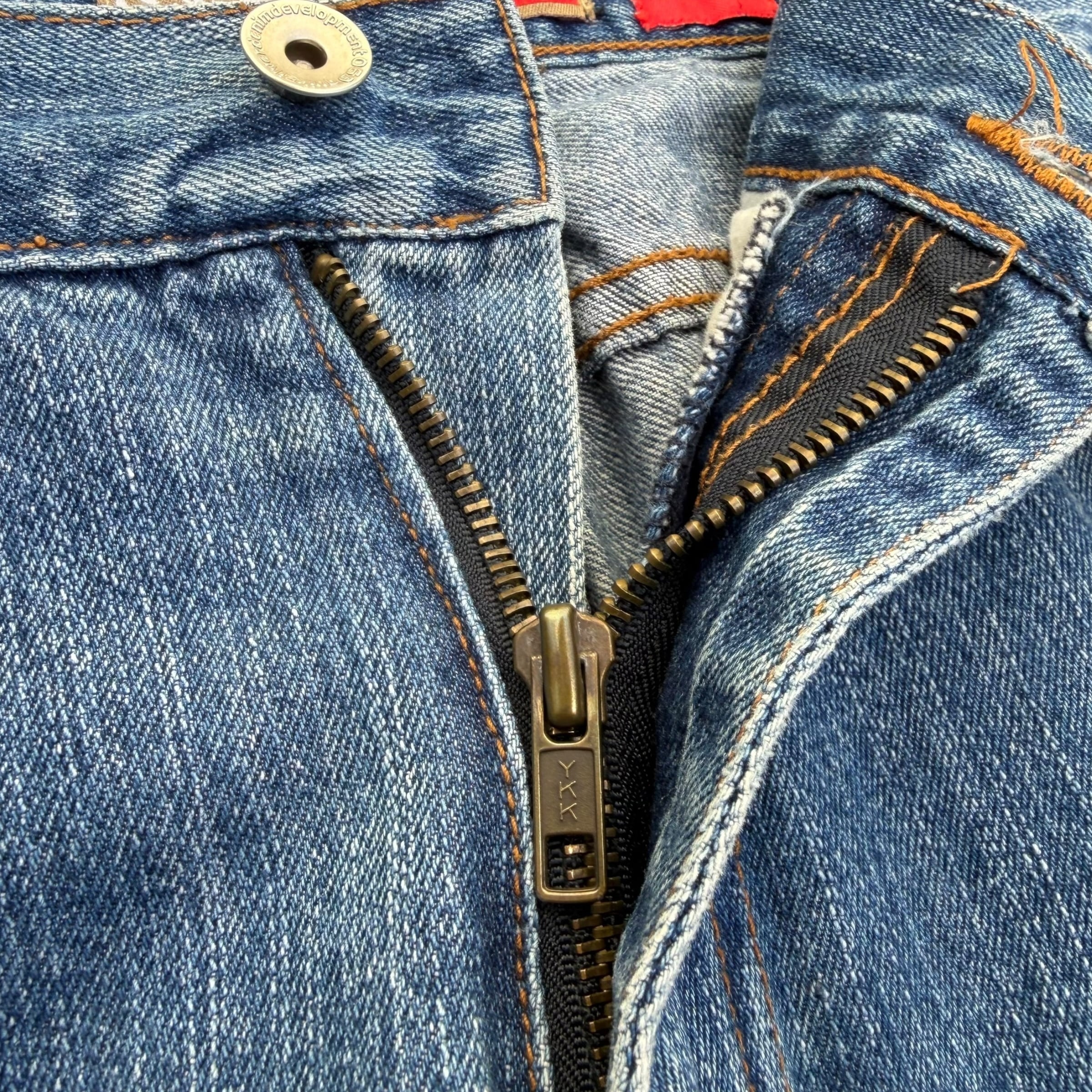 ヒゲやアタリも自然に出ており、Y2K〜00’sらしい空気感のあるデニム。太すぎず細すぎないストレートシルエットで、程よくゆとりのあるバランスです。