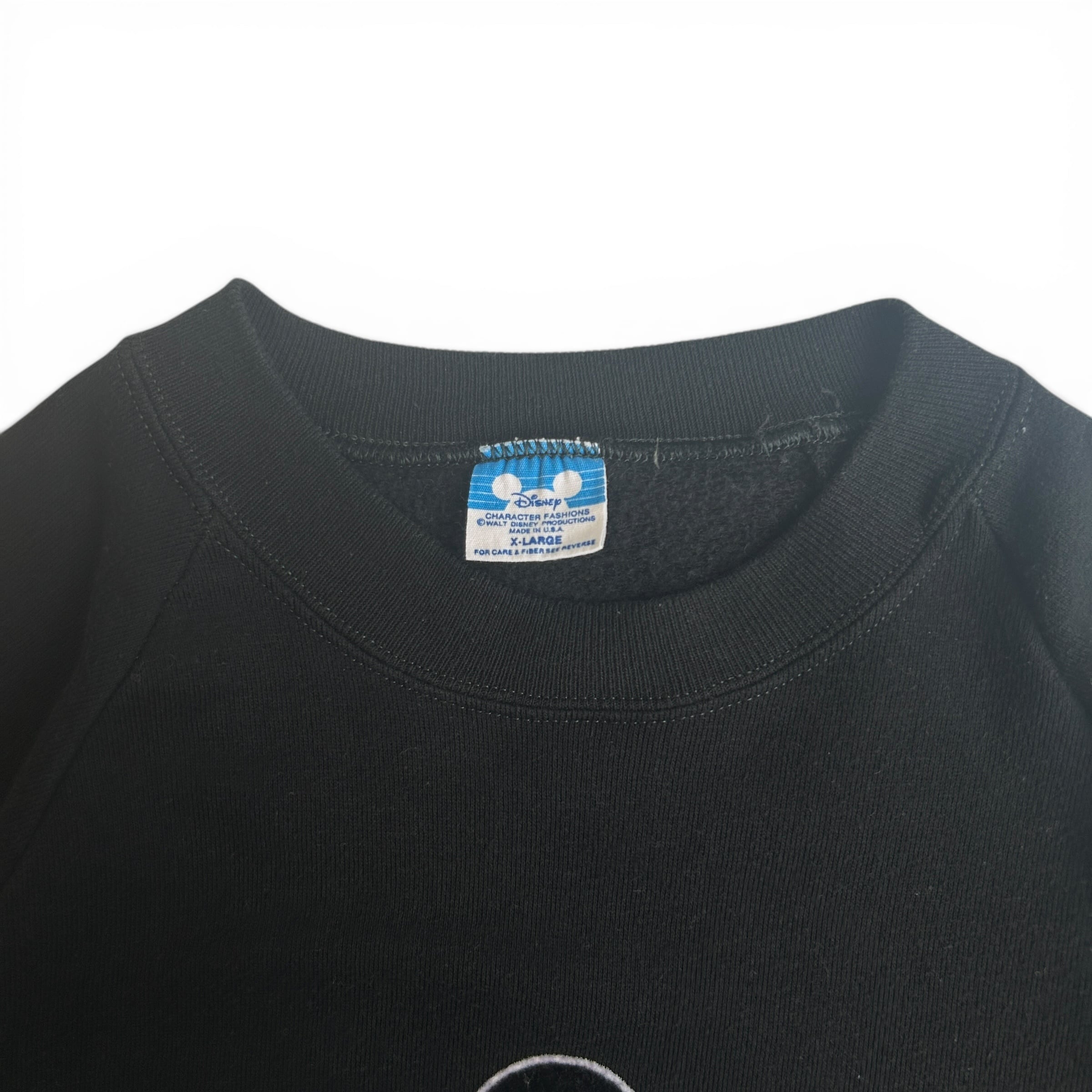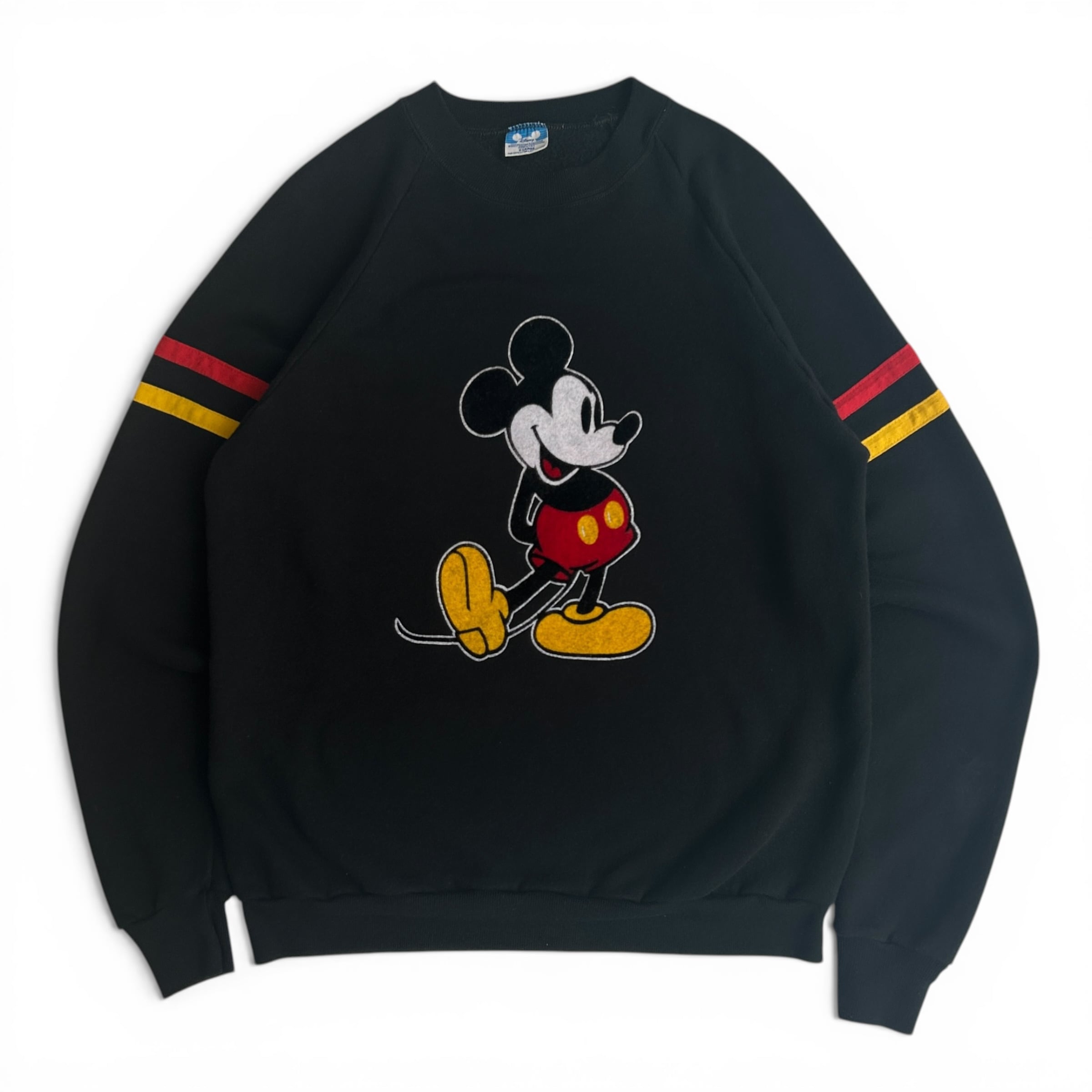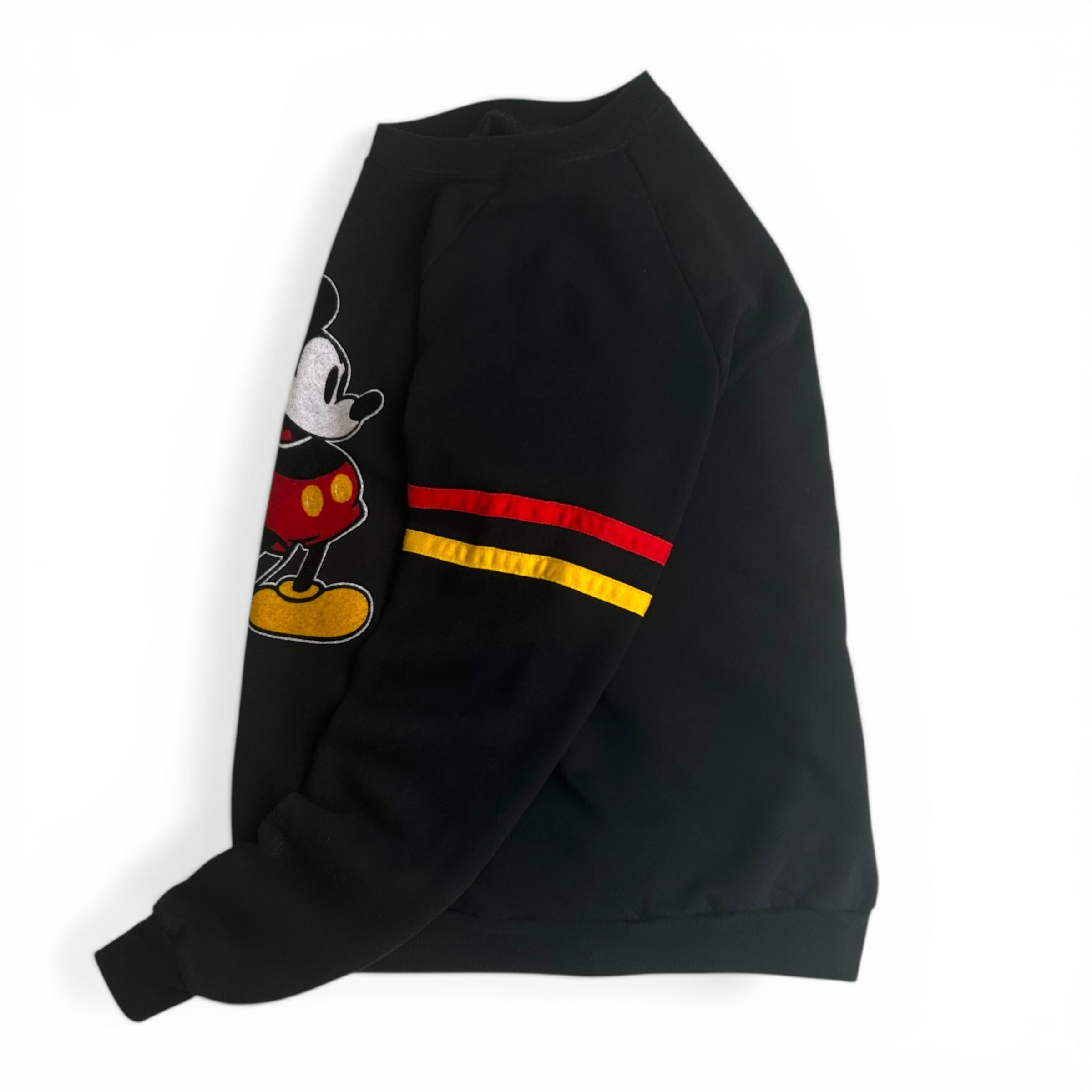 80s MICKEY MOUSE Sweat ラグラン ミッキー アメリカ製 フロッキー 黒 古着